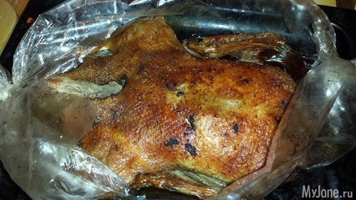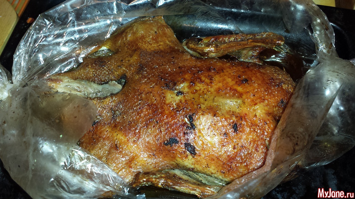 утки красивой не сфоткала...только с духовки. Не очень красивое фото, но на вкус.....ммм......вкуснее не ела, хотя делала разную. А тут просто он нашел рецепт в инете, замариновал просто на сутки, и все. в рукаве запек