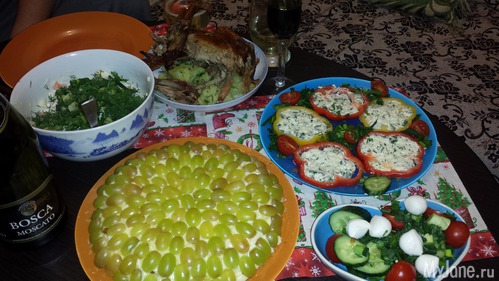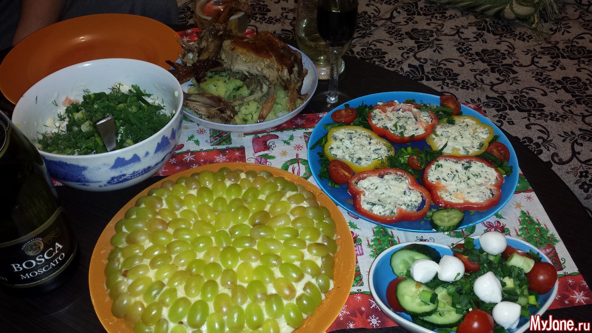 (справа тарелка , присыпанная зеленью, с тазик, это оливье- как без него русским людям на нг?)))))