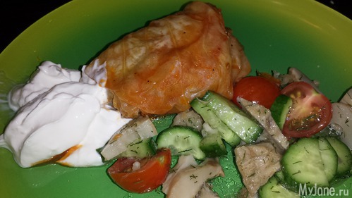 "Салат изумительный на вкус, нежный, и настолько вкусный, что съедается гостями в первую очередь. Может быть, нужно готовить похуже, чтобы на второй день что-то оставалось в холодильнике?)))))))