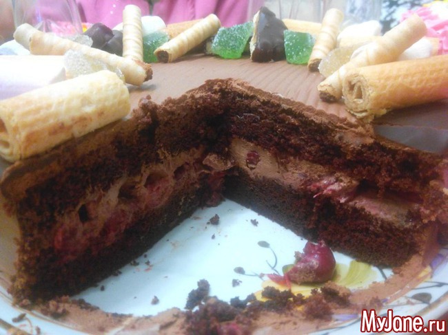 я б тоже сейчас кусочек шоколадного с удовольствием (он еще и с вишнями?)