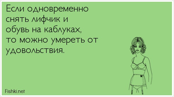 Так чтобы не умереть от удовольствия, надо, наверно сначала снять каблуки, покайфовать, а потом уже и лифчик, не?