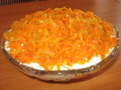 1. Перемешанные сельдь и грибы. Смазываем майонезом.