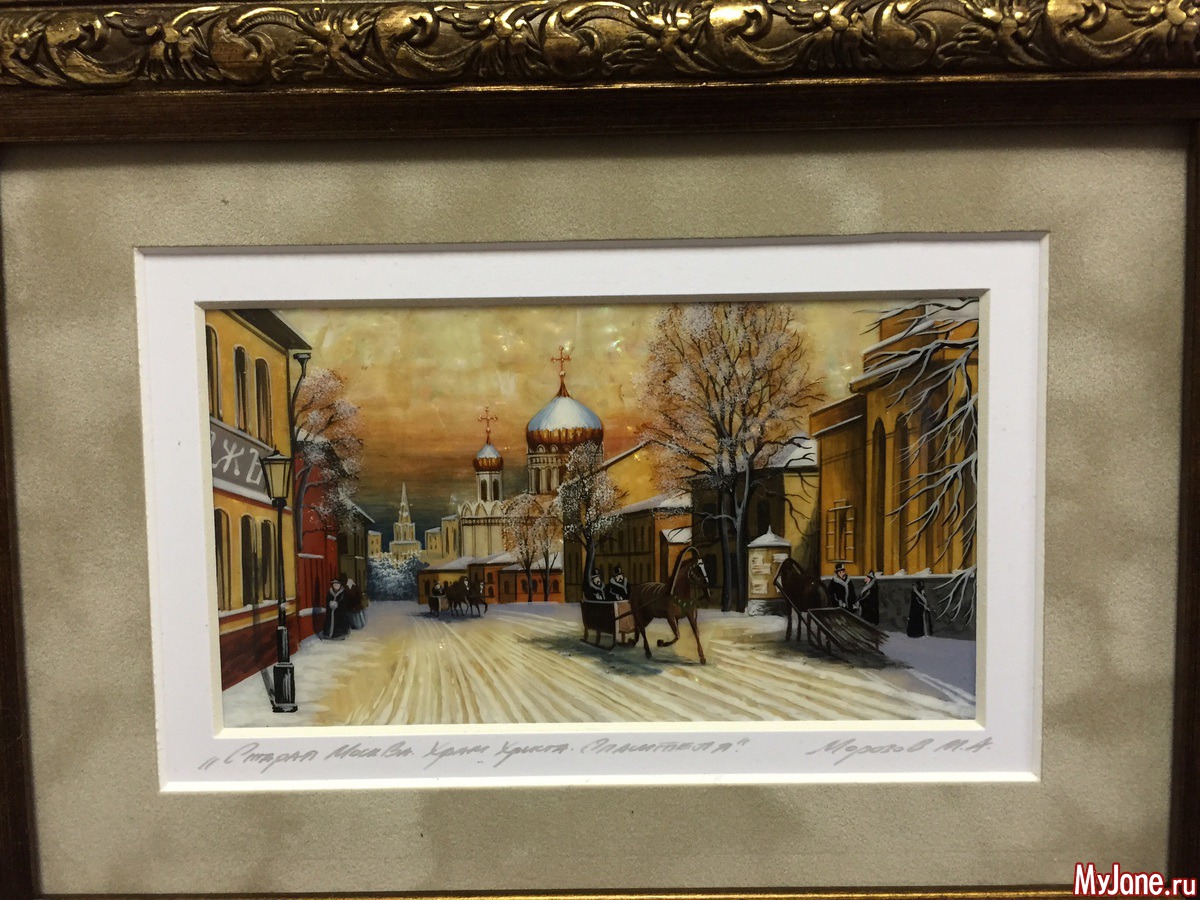Неожиданно купила в Газпроме подарок для папы. У них в здании выставка-продажа союза каких-то художников. Авторские работы по закупочным ценам продают. Много фигни, но одна картинка с ракушечной эмалью мне прям запала в душу, с настроением она, а папа любит такие вещицы. Мы на праздники давно не дарим друг другу подарки, а от случая к случаю: "увидел, подумал, что эта вещица для тебя, купил".