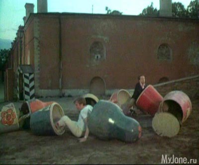 Новогодняя елка на местной телестудии, причем действительно в прямом эфире... Дети на елке в основном сотрудников ТВ и обслуги. Дед Мороз объявляет всякие номера, загадки задает, типа: — "Вот очаг, но он картина. К нам выходит...". Умные дети орут: — "Буратино!".