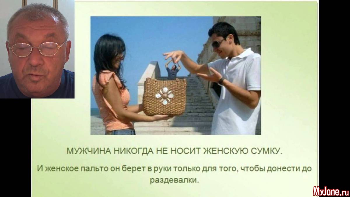 5. Мужчина никогда не носит женскую сумку. И женское пальто он берет только для того, чтобы донести до раздевалки.