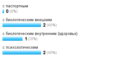 Мне 53 года. Окружающие не дают больше 37-38. У врачей вообще ко мне вопросов нет. Казалось бы - живи и радуйся. Но я чувствую себя Дунканом МакКлаудом в юбке. С ровесниками мне трудно найти общий язык- у меня ничего не болит и я дикая хозяйка. Хотя нет - я люблю готовить. Мой круг общения от 25 до 35 лет. У меня пять детей -они уже зрелые люди имеющие семьи и хорошую работу. С мужем отношения скорее братские. Со старшей дочерью (ей 34) мы просто подруги, у нас нет запретных тем в общении, я многому у нее учусь. Но двое из детей считают, что я должна ходить в серых балахонах и водится с внуками. Такой вот конфликт поколений.