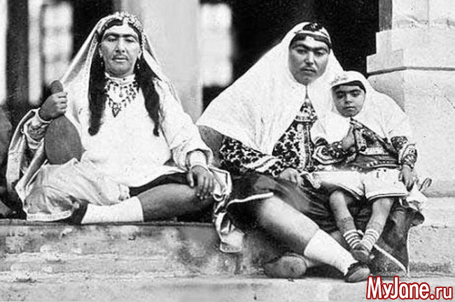 Или эти (справа, с ребёнком на коленке - наша "однобровая" красавица)?