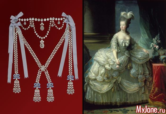 Однажды король Людовик XV решил сделать подарок своей фаворитке мадам Дюбарри и заказал у ювелиров ожерелье из 629 бриллиантов. Заказ был выполнен, но король умер, не успев выкупить его. Людовик XVI отказался приобрести ожерелье для Марии-Антуанетты, так как оно было слишком дорогим.