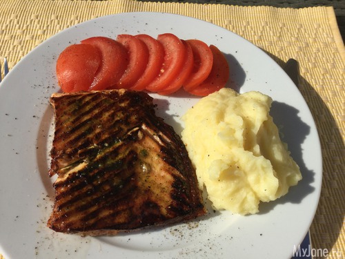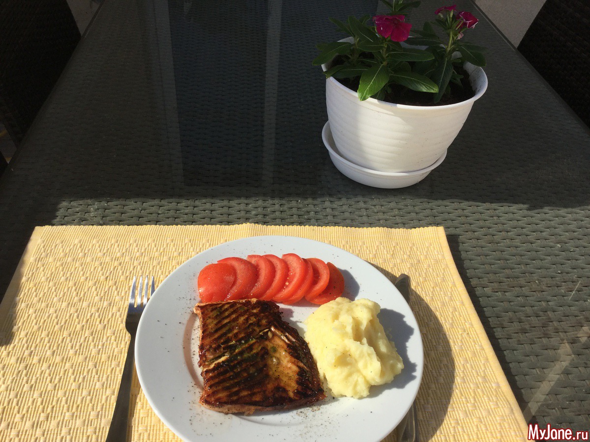 А ещё рыбку жарила. Быстренько так - вжжжжик-вжжжжжик. Соль-перец, смазала мёдом чуть и сладким бальзамиком - у меня из инжира.