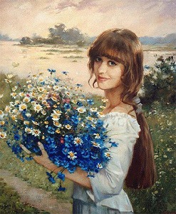 Васильковую нежность тебе подарю,Голубую мечту с ярким блеском в зарю.