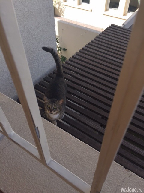 Сегодня у меня день уборки (каждый четверг). Пришла моя помощница-филиппинка. И зовёт меня! Тоже прям орет! Они то орать не умеют. Ну как вышло. Я на верх бегом. Она спрашивает - мадам, вы кота купили? Я сначала лупырики поставила, а потом до меня дошло, что Вася пришёл с инспекцией! Я как заржала! Рассказала ей нашу лав-стори. И Васю сфотографировала сегодня! Он правда поругался для приличия - чужих не любит!, но дал себя погладить!