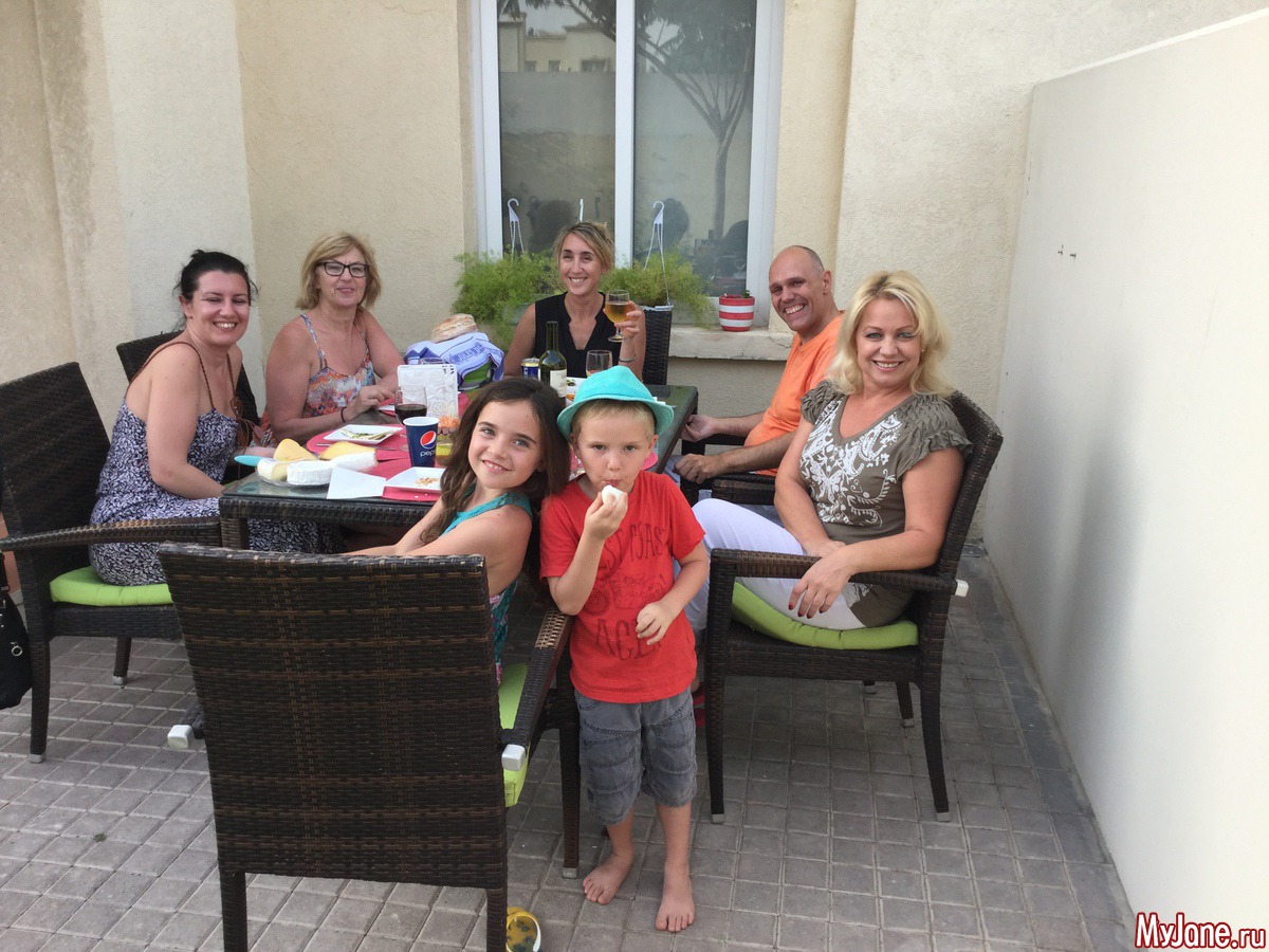 А мы сидели на свежем воздухе. Очень душевно и уютно. Малые сновали от нас к взрослым детям и к мячу. Мы неспешно болтали на нашем тарабарском. Пили вино. Ели сыр и оливки.