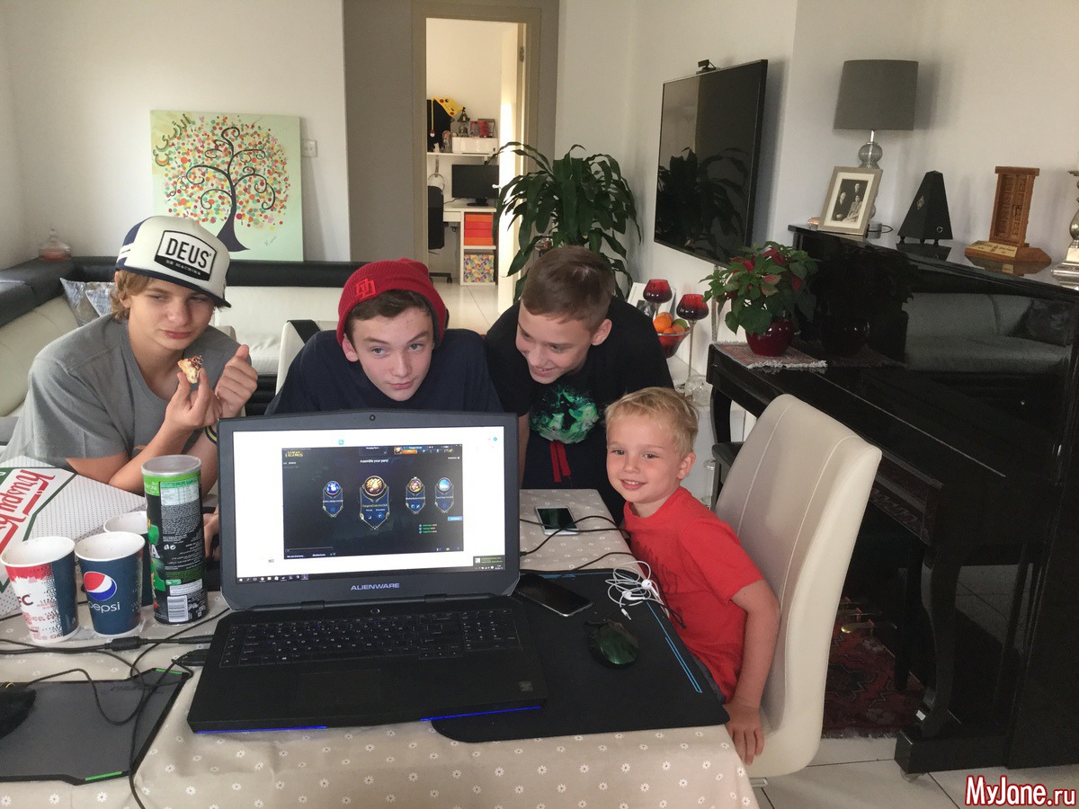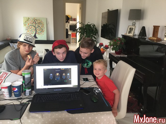 А к мелкому пришли друзья. У них была своя тусовка и своё общение. Но они все равно такие сладкие котики! Хоть уже и подросшие! Я могу запросто их обнять и чмокнуть в щёчки - им это ещё пока нравится. Мы им отдали обеденный стол в зале, я покрыла его скатертью что б не было всяких отпечатков и они засели за игру. Мы снабдили их напитками, чипсами, печеньками и всякими другими вкусностями.