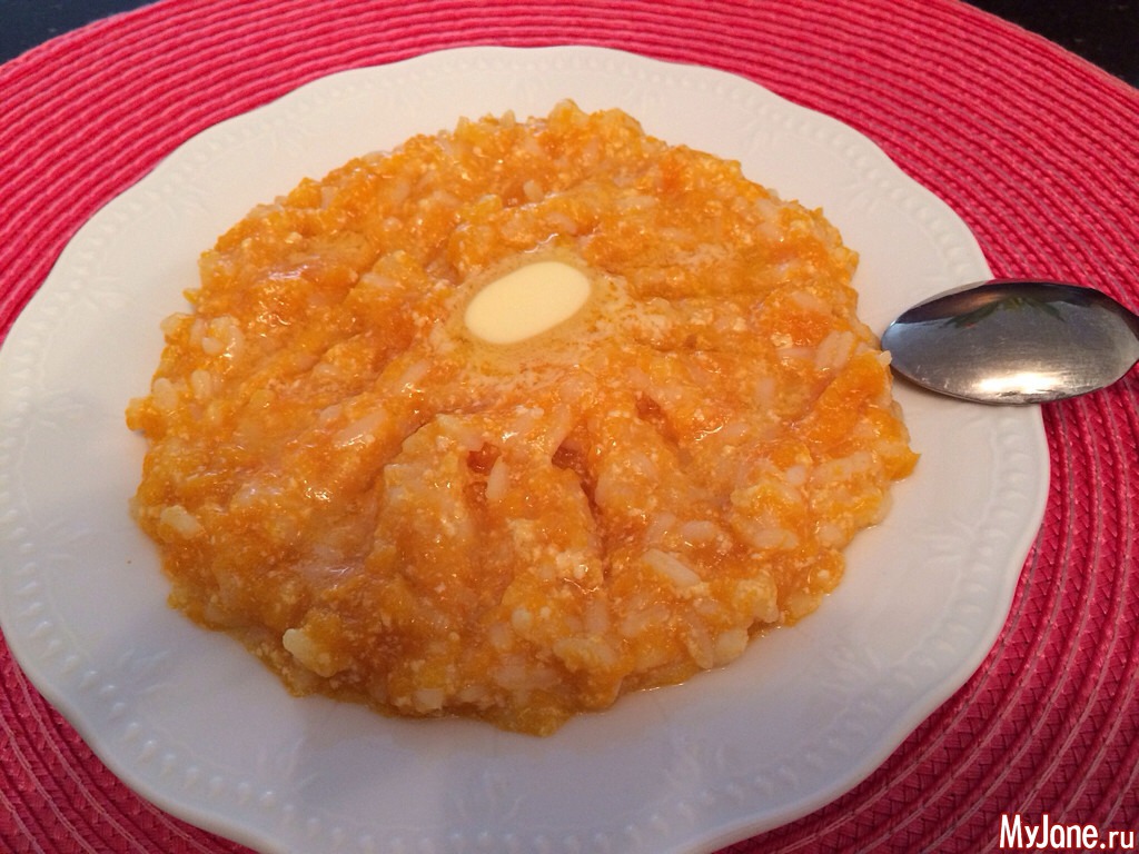 и заливаю все это молоком что бы покрыло. Ставлю на огонь, как закипит, убираю огонь до минимума и накрываю крышкой. Как рис готов - каша готова!Потом я добавляю соль, сахар и хорошо мешаю. Не толку. Просто мне нравятся маленькие кусочки тыквы, которые попадаются. Ну и кусочек хорошего сливочного маслица! - нам, девушкам, для кожи полезно!