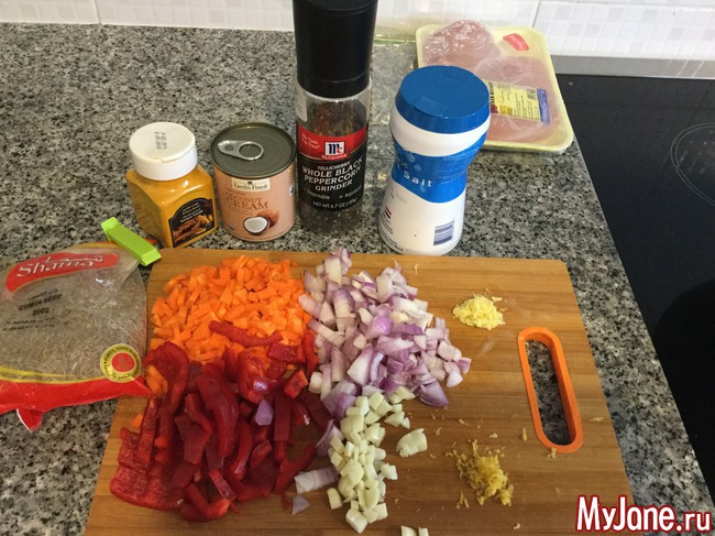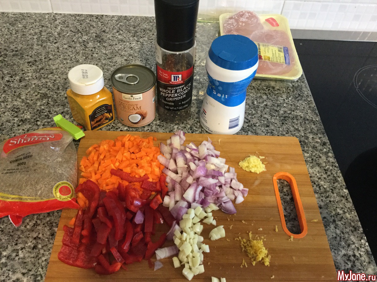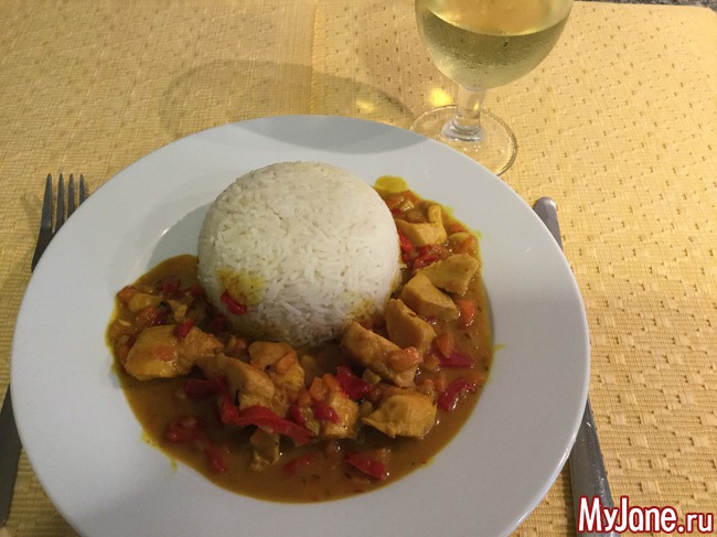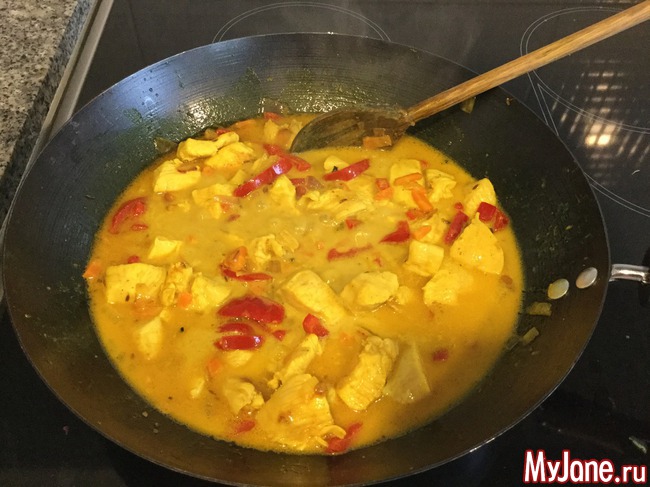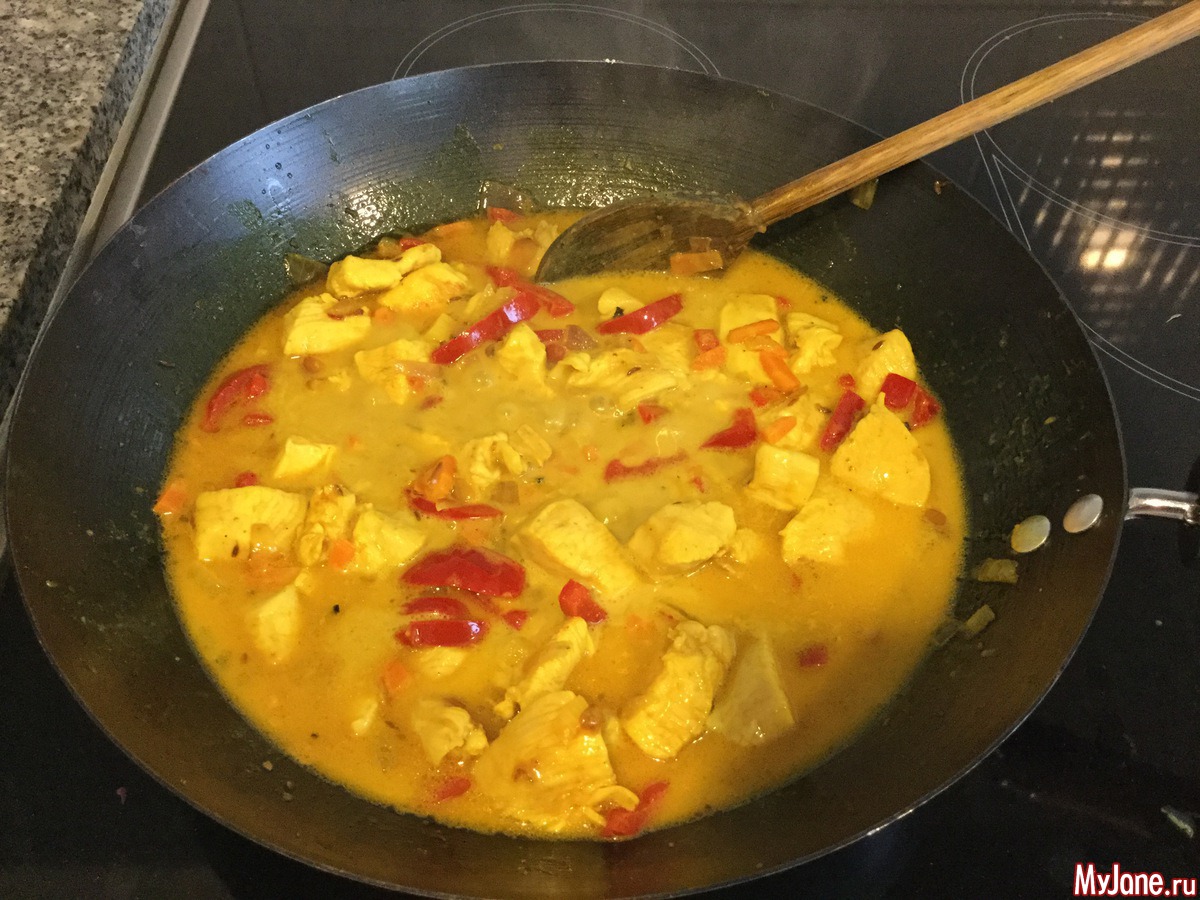 Сегодня у меня лемонграсс не было - заменила просто цедрой лимона и парой капель сока. Йогурта тоже не было - забыла купить напрочь! Исключила. Воду не подливала - курица приготовилась быстро. И помидоры не использовала! Делала в чистом виде. Хотя помидоры можно заменить на томатную пасту - тогда у всего блюда будет розоватый или оранжевый цвет!