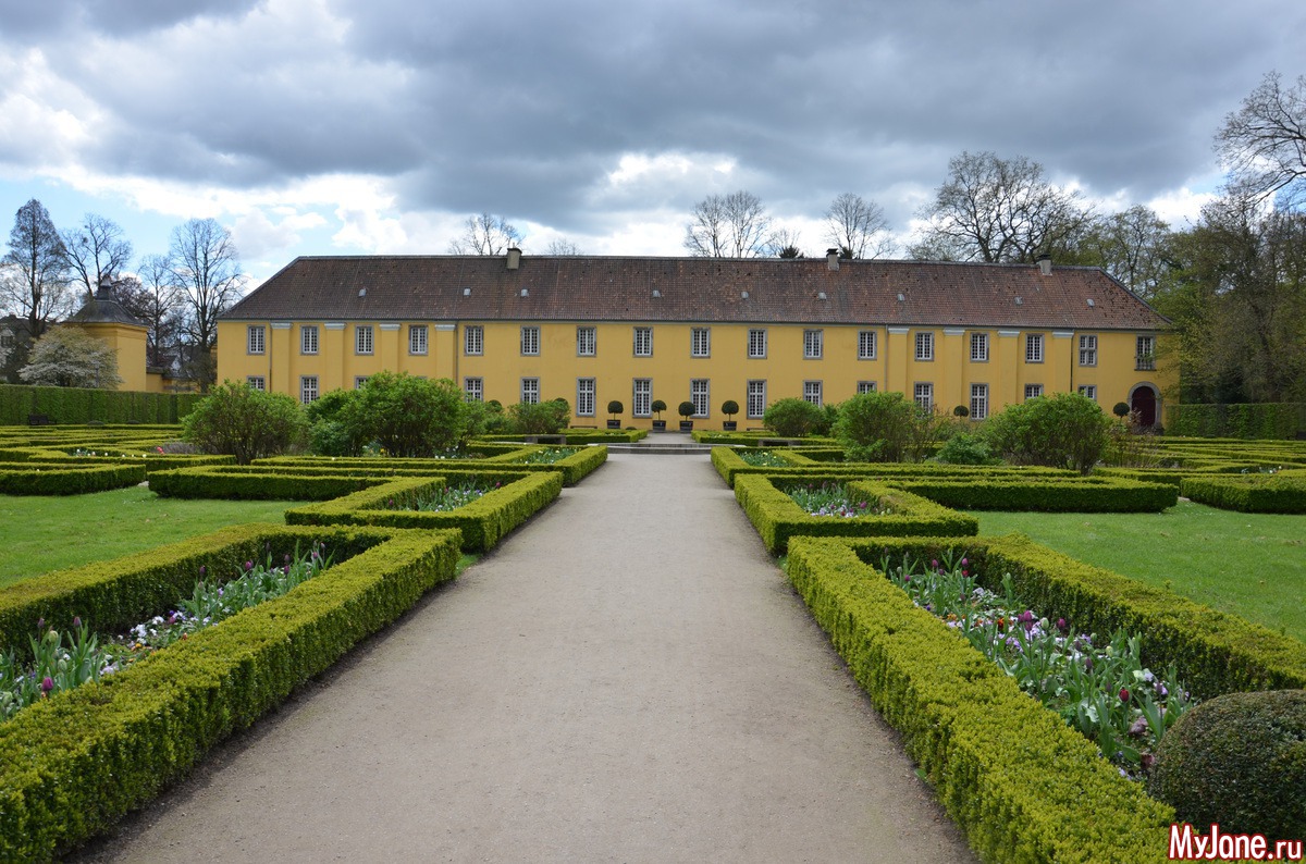 Во дворце располагались квартиры курфюрста и его супруги; к нему примыкали небольшие «личные парки» высочайших особ. Боковые флигели — «кавалерские дома» — предназначались для свиты.