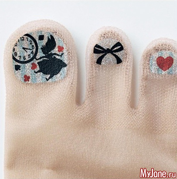 Подобрать «колготки с педикюром» можно на любой случай — они продаются с самыми разными вариантами дизайна. Более того, такой «педикюр» даже можно менять несколько раз в течение дня.