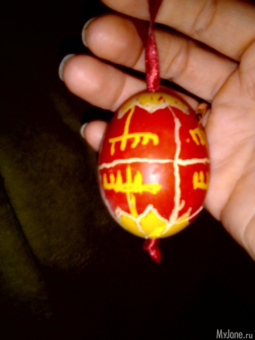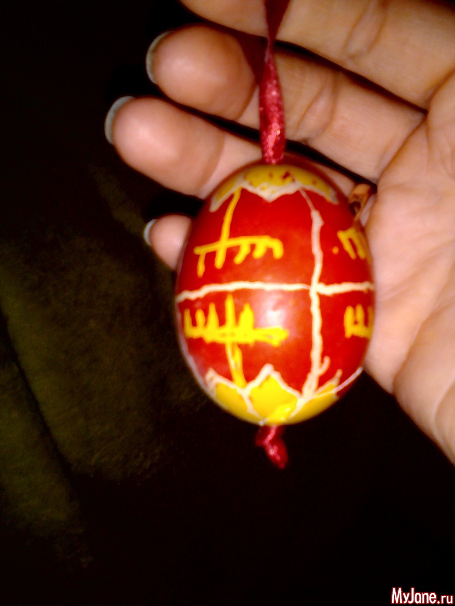 ну не знаю насколько вам понятно на укр яз, но это на шкорлупке при выдутом яйце рисуют воском спец писачком и потом окунают в краску, и то что под воском то не покрасилось и так несколько этапов в разные краски, - но это уже получаются обереги ! и у каждого региона свои орнаменты.