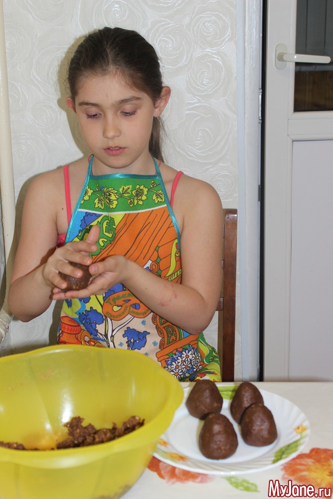 Смешать полученную смесь с печеньем до однородной массы, получится как пластилин.