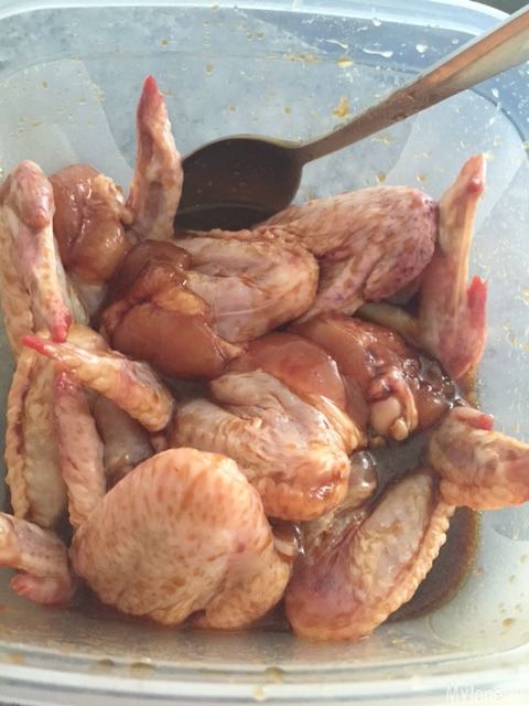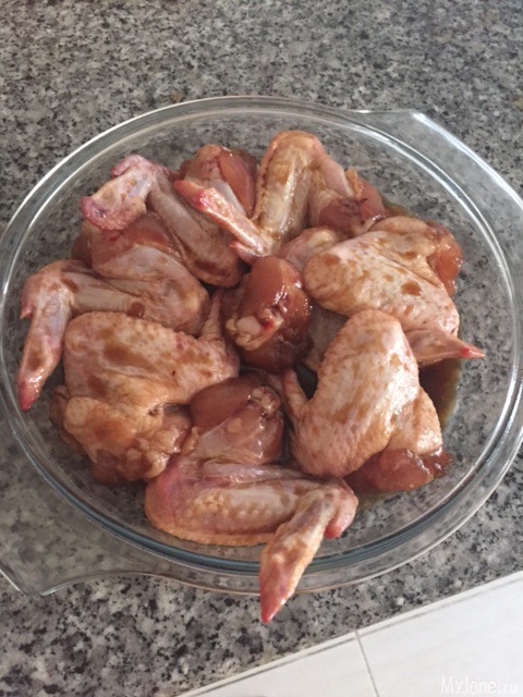 Итак, берете миску льёте туда соевого соуса (я все на глаз) ну такую хорошую столовую ложку (если много мяса, то конечно больше!!!), туда столько же примерно мёда и пол столовой ложки соды. Все. Все смешали - стал соус такого странноватого коричневого-белесого цвета. Положили туда ваше мясо, перемешали и пусть маринуется. У меня часа полтора стояло. Можно смело больше - иногда и день пусть стоит.