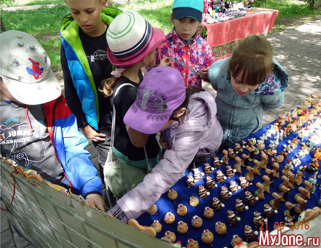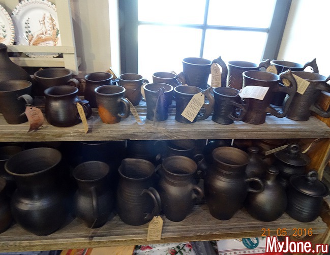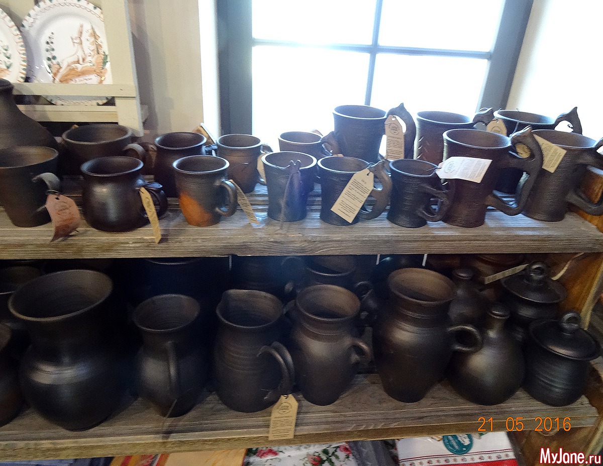 кокошники, валенки (сейчас не сезон), утварь из натуральных материалов – бересты и глины.