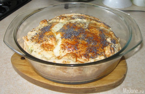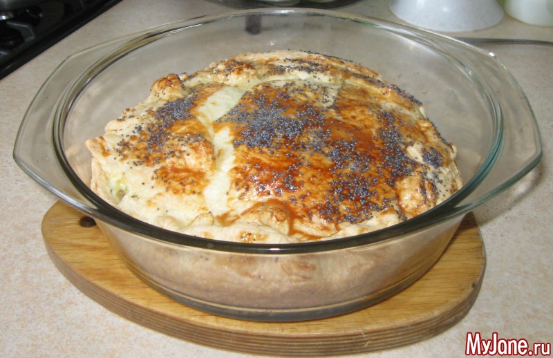 Сделала закрытый пирог не толстый (хотела по противню еще тоньше раскатать, но скалка не поместилась