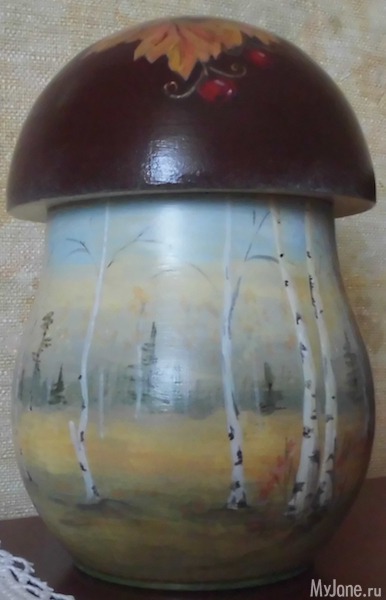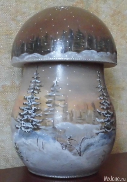 У меня была идея - нарисовать все времена года, но, к сожалению, в магазине было только два гриба! Пришлось ограничиться зимой и осенью.
