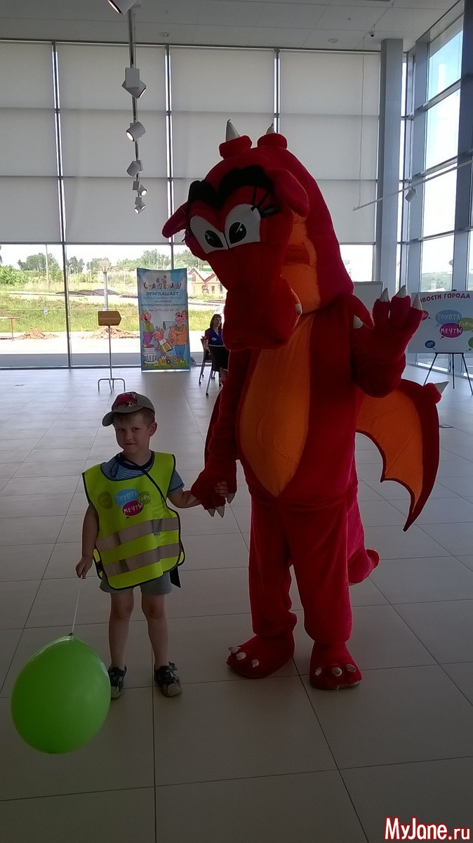 На входе нас встречал танцующий Дракоша и серьезный Тойота-Мишка, для детей работало бюро трудоустройства, малышам заводили настоящую трудовую книжку, выдавали форму и сумочку, чтобы положить туда трудовую и честно заработанную зарплату. Дети проходили обучение, выполняли задания и получали зарплату. Местная валюта назвалась мечталеры. На выходе из цехов стояла сувенирная лавка, где можно за мечталеры продавались всякие интересные штуки. Но пока денег ни у кого не было, все стояли перед витриной и смотрели на игрушки. Илюхе понравился огромный танк за 230 местных денег и трансформер за 260. Меня впечатлил набор художника в деревянном кейсе за 280 мечталеров. К слову, это был самый дорогой подарок.