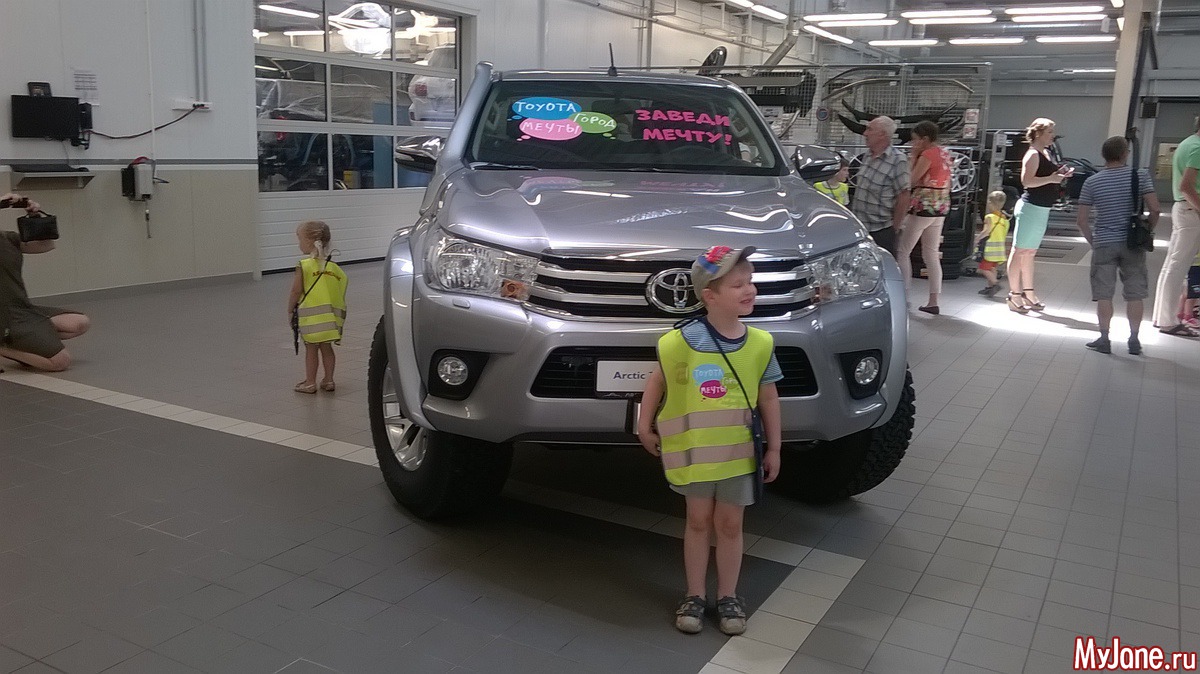Мы вчера были на празднике в Тойота-центре. Я совершенно случайно узнала, что будет праздник для детей, приглашаются все желающие, дети смогут получить профессию автожурналиста, автодизайнера или автомеханика. Еще там был тест-драйв, но, забегая вперед, скажу, что мы на него не попали.