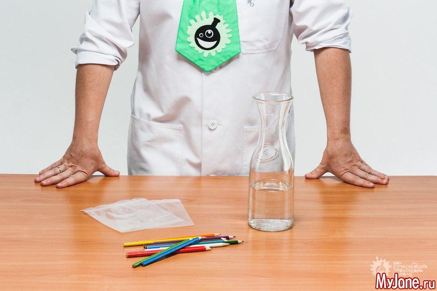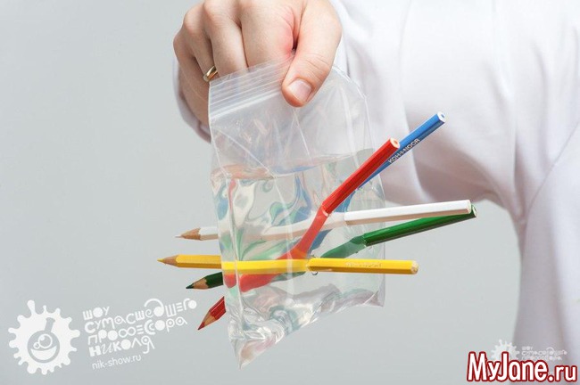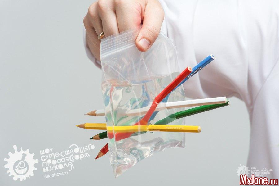 Все дело в том, что наш пакет плотно обхватил карандаши, и вода не вылилась!