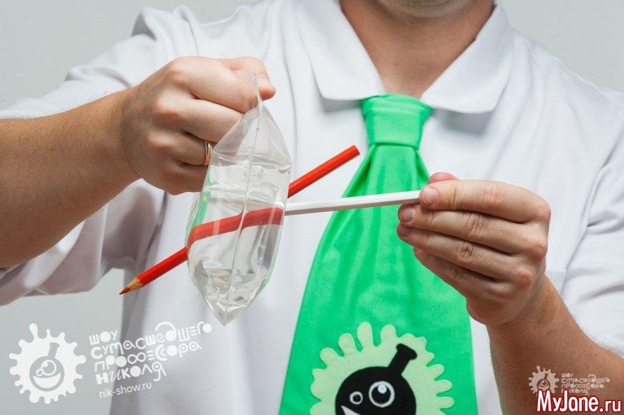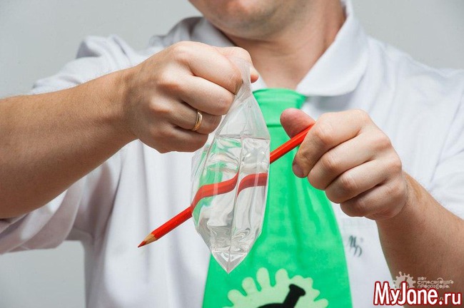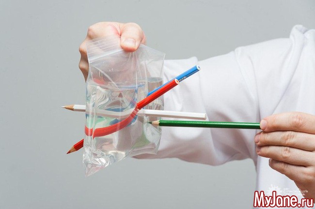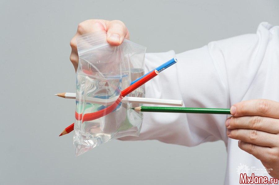 Можно ли проткнуть пакет с водой так, чтобы вода из него не выливалась?