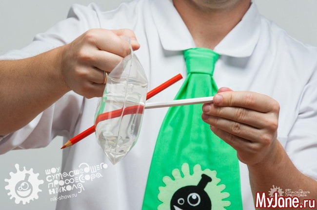 Как правильно проткнуть пакет, чтобы вода не выливалась? Научит профессор Николя!