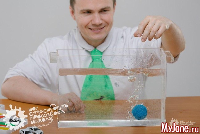 Для начала убедимся, что пластилин тонет, для этого сделаем из пластилина шар и бросим в воду — утонул!