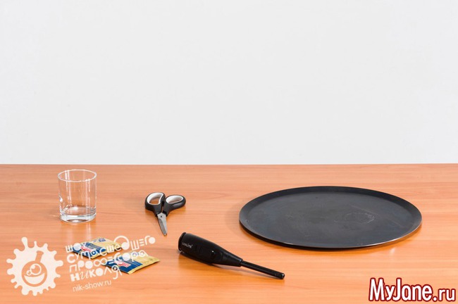 • расправим пакетик придав ему форму цилиндра и устанавливаем его на поднос;