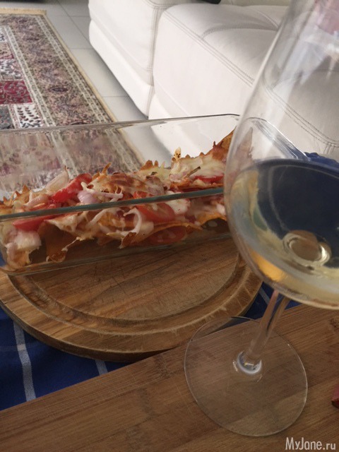 Рекомендую всем! Теперь это будет моя коронная аперитивная закуска. Только возьму красивыю круглую стеклянную форму для низких тортиков. Сегодня делала для нас двоих - шикаррррно! Начос и вино!