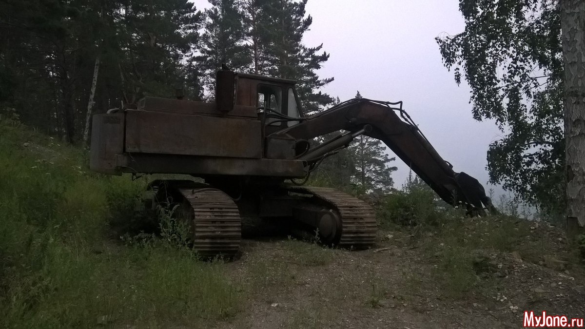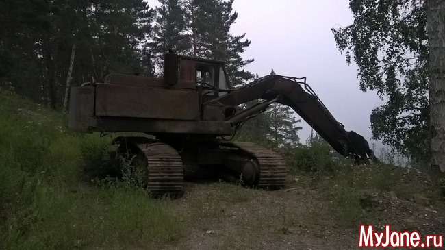 Ну как же мы могли пройти мимо строительной техники? Экскаватор стоял на самом краю обрыва, очень крутого и страшного