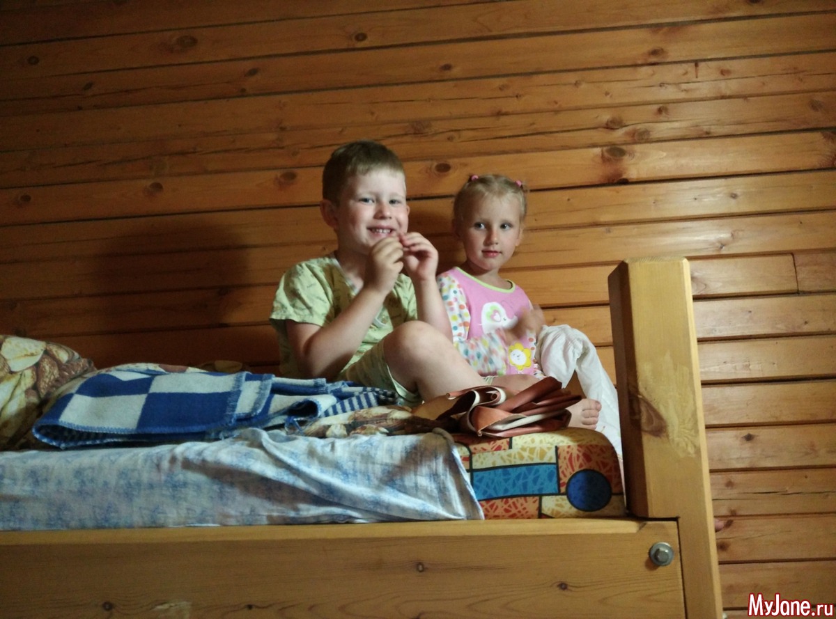 Мы жили в домике, до озера было метров 70. Можно было не следить за детьми в режиме 24/7 - по базе отдыха было запрещено ездить на машине, везде открытое пространство и детей видно, куда бы они не побежали. Илюхин был в полнейшем восторге от двухъярусной кровати. Угадайте, кто спал наверху?
