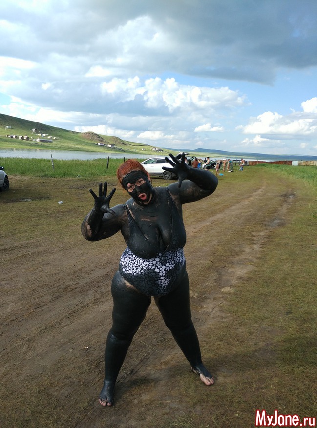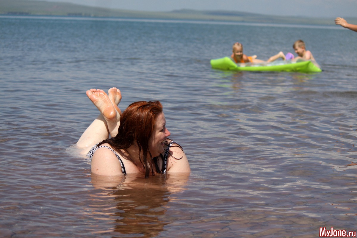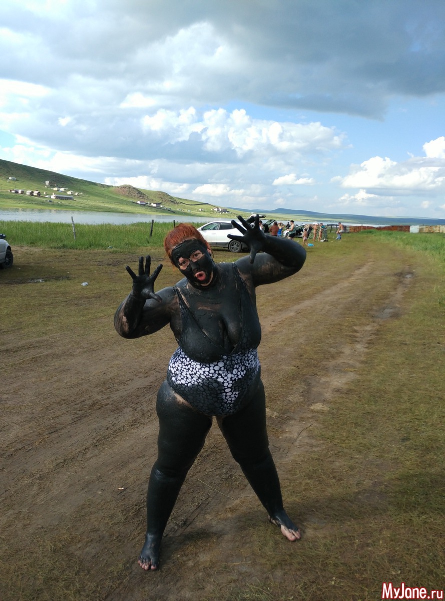 Как достать грязь, стоя по пояс в страшно соленой воде, если ни у кого не хватило мозгов взять какой-нибудь пакетик или хотя бы бутылку? Очень просто: подцепить ногами и сложить в декольте.
