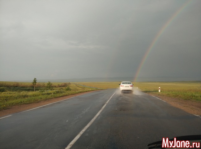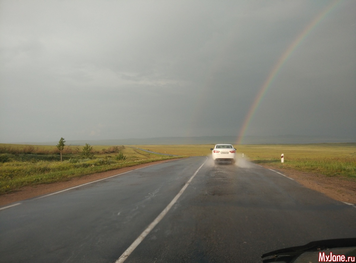 Собственно, на Шира мы пробыли не больше часа, пошел сильный дождь. Я немного пробежала под дождем по рынку. Мы были где-то на середине пути, когда дождь закончился так же резко, как и начался, и появилась роскошная двойная радуга! Фотала из окна машины, пока Настюха борзела со скоростью 120 км/ч, так что за качество не отвечаю!