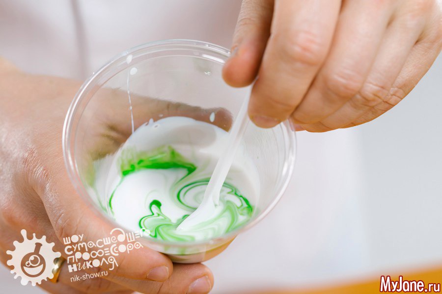 - добавим пару капель красителя и хорошенько перемешаем;