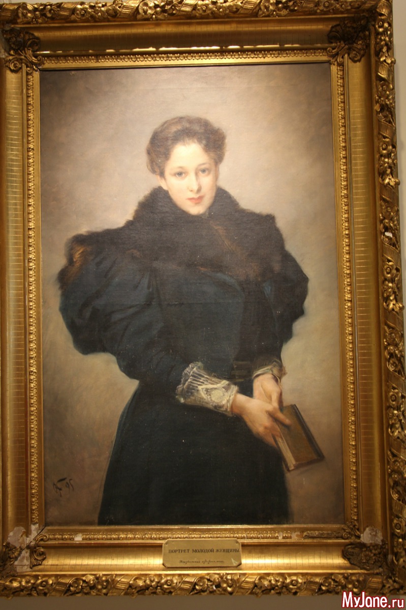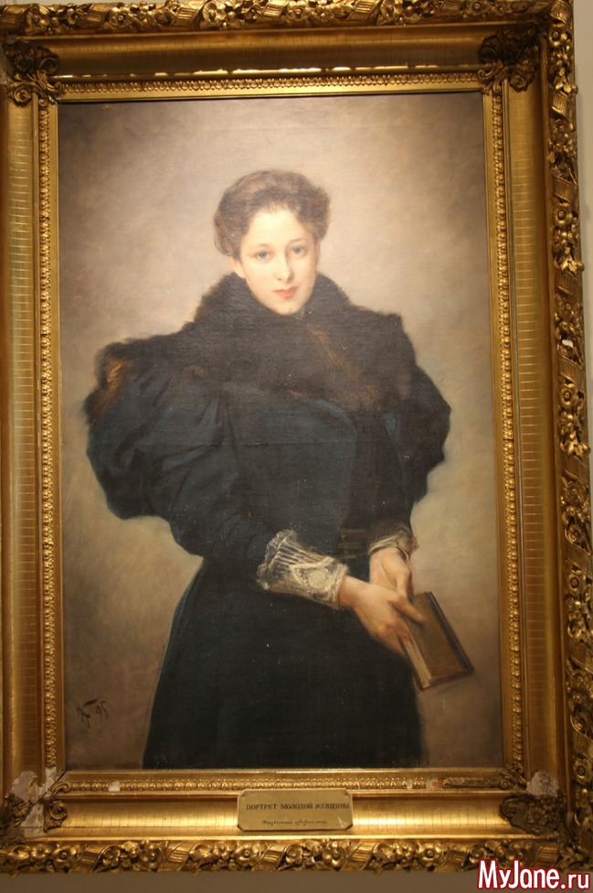 Эта молодая женщина могла быть дочерью одного из местных помещиков. Судя по богато декорированным обшлагам платья и широкому меховому воротнику, женщина из состоятельной семьи. Возможно, не дочь, а молодая хозяйка, которая совсем недавно вышла замуж и счастлива и покойна своим новым статусом. У нее в руках книга, может быть, она читала ее, сидя на скамье в саду ранним, весенним, еще холодным днем...