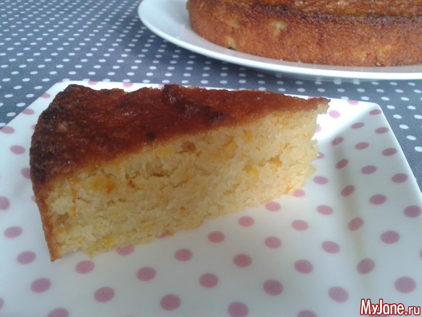 Мы с детьми еще немного повозились, сделали апельсиновый сироп и пропитали им пирог, но он итак довольно влажный получается. Можно есть просто так, а можно с натуральным йогуртом или сметаной.