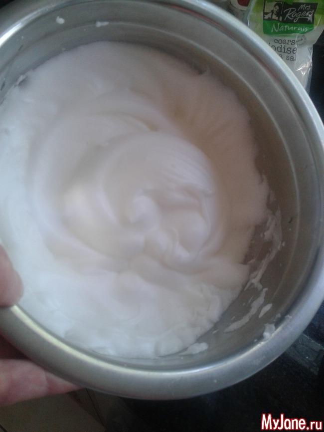 5. Взбиваем миксером белки до получения густой, плотной пены.