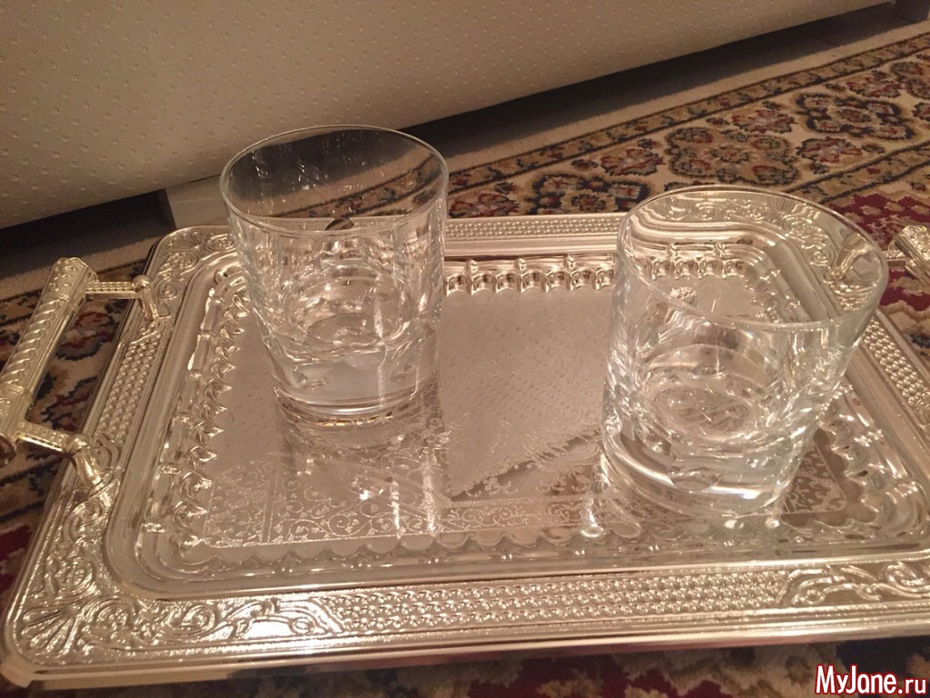 Мне муж подарил очень хорошие бокалы. Пару. Из самого тонкого хрусталя. Несмотря на свою простоту, бокалы с историей. Если вы посмотрите в интернете, то сразу поймёте, что если вы любите виски, то вам надо иметь такие бокалы! От Кристофля. На дне есть очень тонкая гравировка.