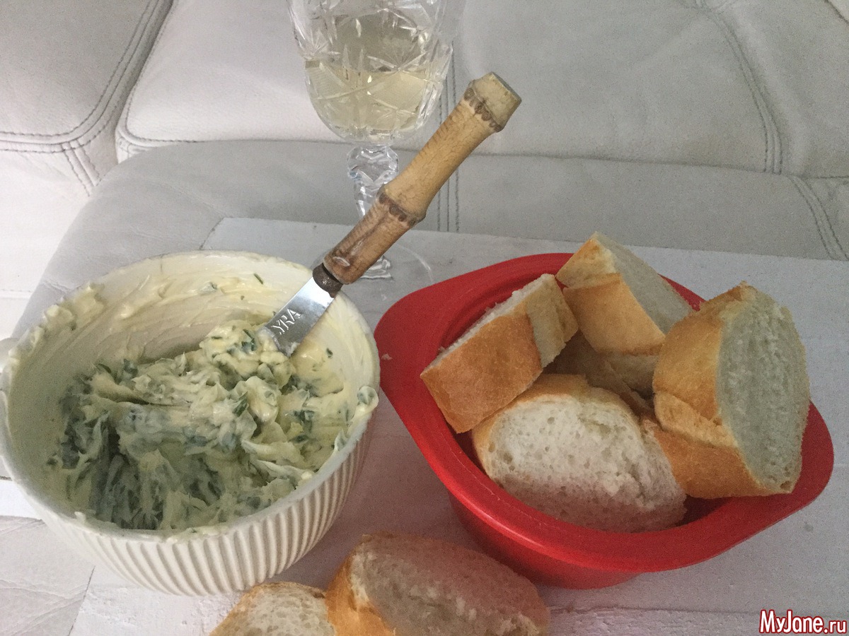 Подать просто на обычной разделочной доске такое масло, свежий хлеб, бокал вина, сыр... Уммммммм!