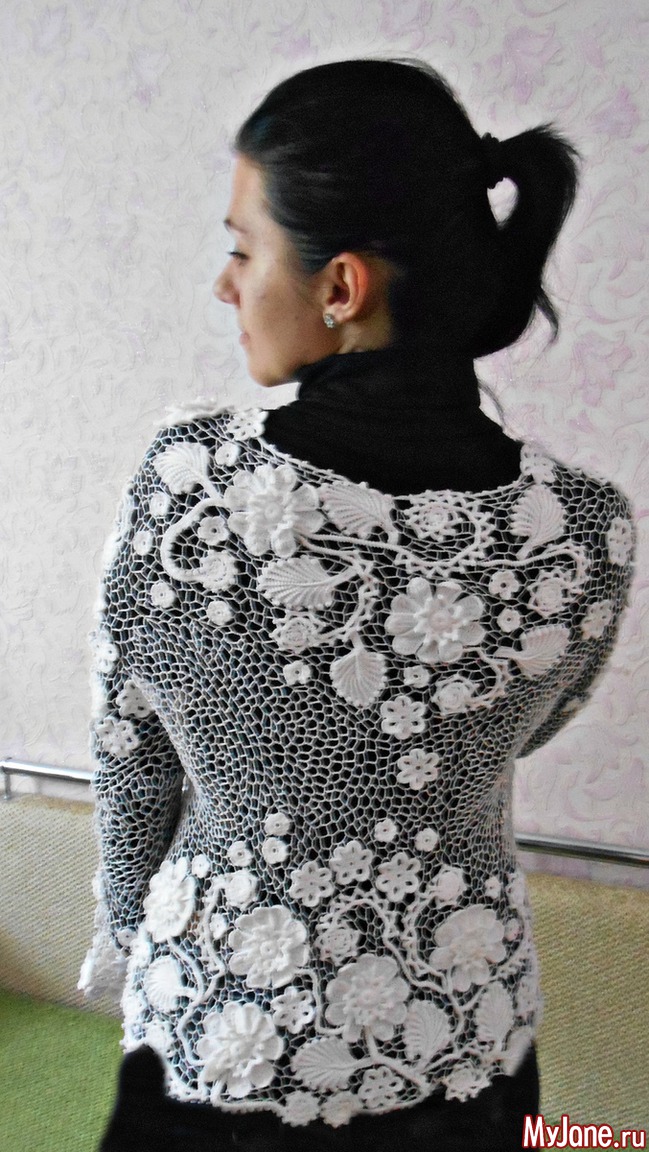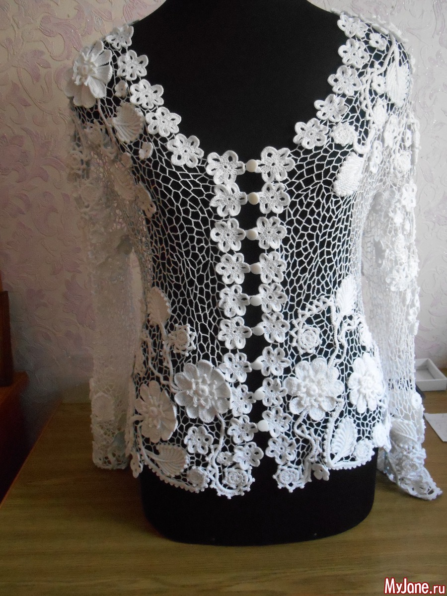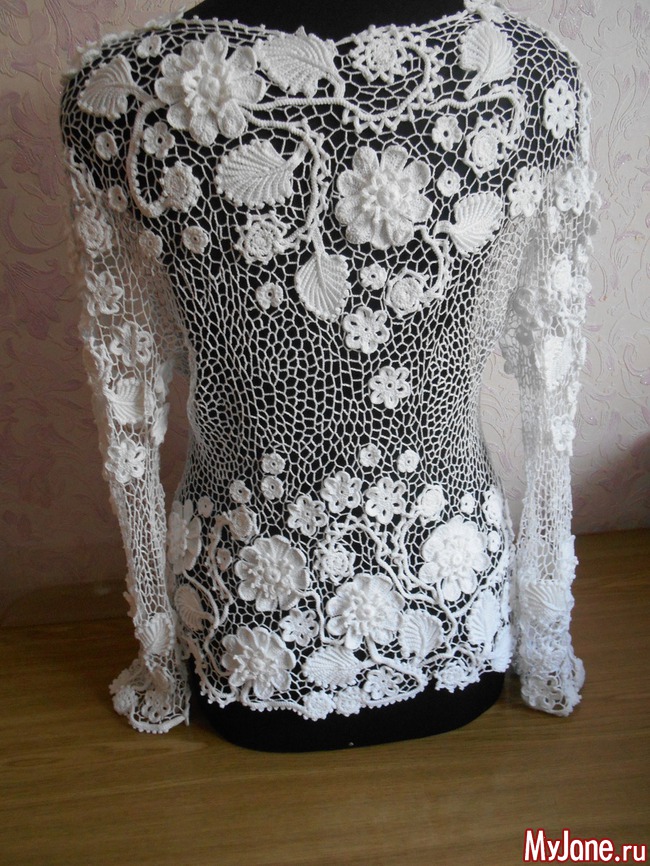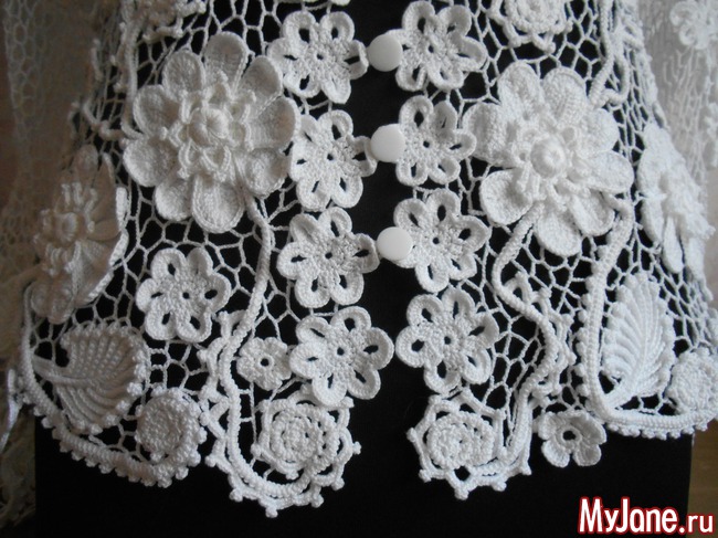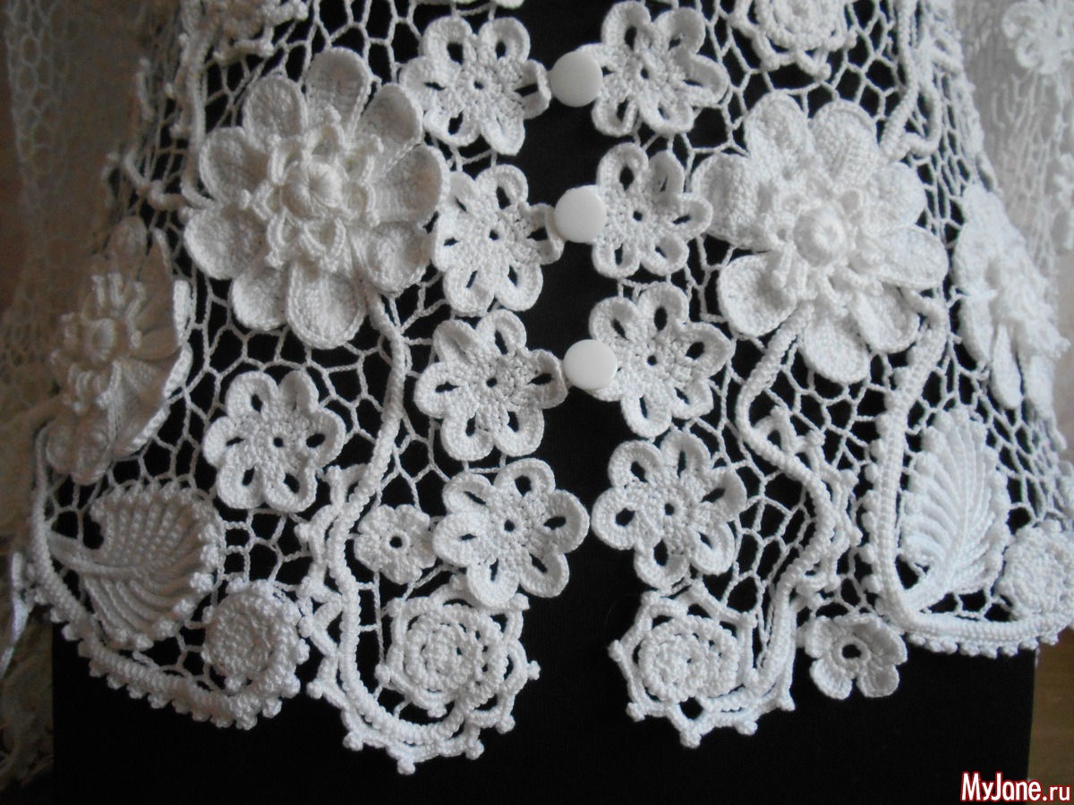 Модель выполнена в сложной технике наборного ирландского кружева из хлопка Виолет и Канарис, крючок 1,3 и 0,8.