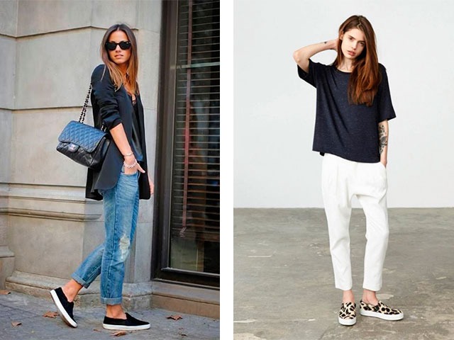 Они стали просто незаменимыми в гардеробе любой девушки. Несмотря на то, что они, вроде бы, выдержаны в спортивном стиле, они все же отличаются от классических привычных нам кроссовок. Слипоны выглядят похожими на кеды, но за счет своей подошвы и невероятно разнообразных принтов опровергают схожесть с первыми.