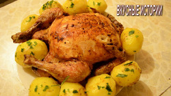 Готовится это блюдо очень легко и вполне подойдет для праздничного стола. Курица запеченная в духовке получается очень вкусная, сочная и ароматная с хрустящей золотистой корочкой. Курицу можно подавать с любым гарниром. Например с картофелем, как это сделала я. Отварить картофель, после чего поджарить в масле, которое выделилось при запекании курицы.