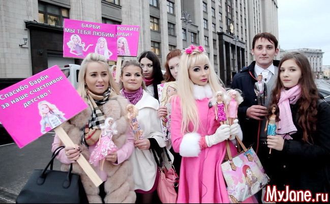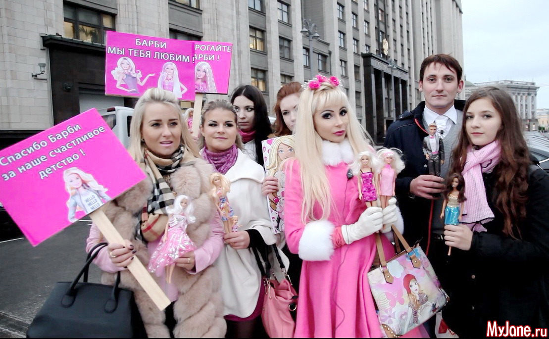 Но у поклонниц куклы Барби есть свой кумир. Речь идет о певице, много лет воплощающей образ куклы, по имени Татьяна Тузова. Девушке, собирающей аншлаги на концертах, удалось объединить своих поклонниц и собрать у здания Государственной Думы акцию протеста. Пораженным чиновникам еще не доводилось видеть такого единения вокруг кумира, который следует к достижению своей цели в течение многих лет и не желает допустить запрета куклы Барби.