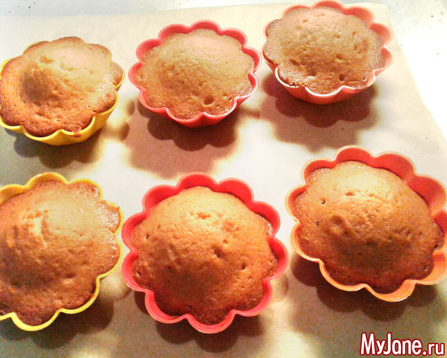У меня силиконовые формочки. Ставлю в хорошо разогретую духовку и делаю слабый огонь. Выпекаю 30 - 40 минут. Готовые кексы сверху посыпаю сахарной пудрой. На одну такую порцию получается 24 кекса.